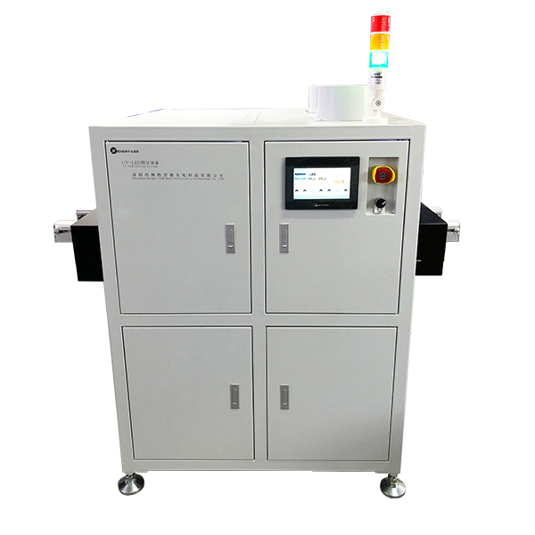 這是一款針對(duì)于PCB三防膠uv固化而設(shè)計(jì)的高性能鏈條式UVLED固化機(jī)。該UV設(shè)備主要包含控制系統(tǒng)、UVLED照射頭及雙軌道鏈條式輸送帶,采用上下兩個(gè)260X160mm的面光源照射,可手動(dòng)調(diào)節(jié)軌道寬度,雙通道PLC控制,整機(jī)及光源面積均可定制。