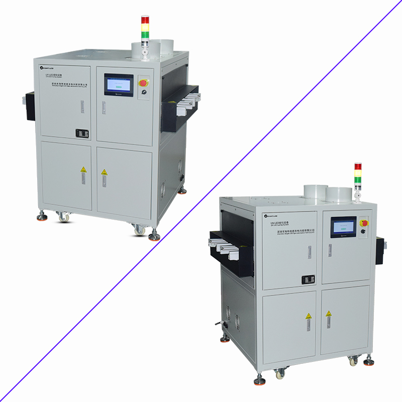 2、設(shè)備提供聯(lián)機(jī)模式和單機(jī)模式可選,聯(lián)機(jī)模式下,本機(jī)通過SMEMA通信方式,跟上位機(jī)和下位機(jī)進(jìn)行物料對接并固化,單機(jī)模式下,點(diǎn)擊啟動按鈕,UV機(jī)輸送帶及UVLED一直工作(UVLED可以屏蔽),點(diǎn)擊停止按鈕,傳送帶及UVLED停止工作。