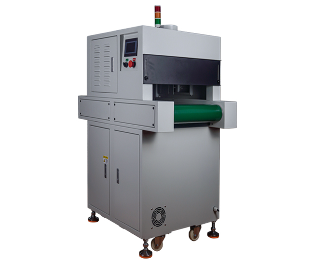 2、uv固化機設(shè)備提供連續(xù)模式和固定照射模式可選,連續(xù)模式下,點擊啟動按鈕,UV機傳送帶及UVLED一直工作,點擊停止按鈕停止UV機工作;固定照射模式下,點擊紫外線uv固化機啟動按鈕,UV機傳送帶開始工作,當物料檢查傳感器感應(yīng)到產(chǎn)品后,傳送帶停止,UVLED開始照射并計時,計時到后,傳送帶啟動,N秒內(nèi)沒有檢查到產(chǎn)品(時間可設(shè)),UVLED關(guān)閉,否則UVLED保持運行。
