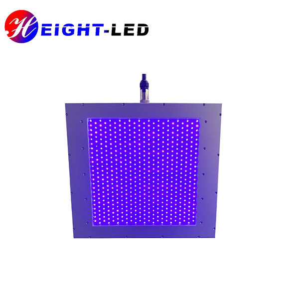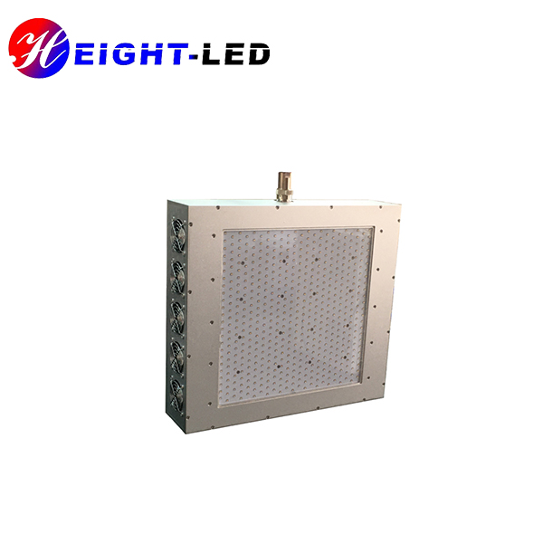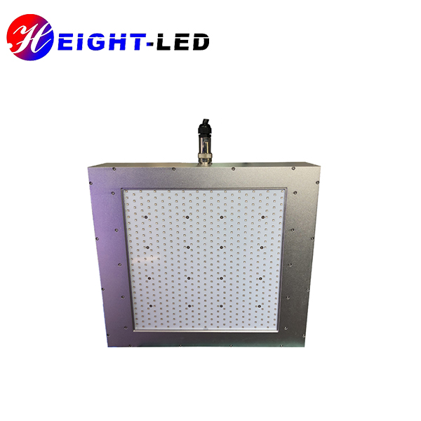This uv lamp is a uvled area curing system.It mainly includes a controller and a uvled irradiation head.The UV spectrum wavelength is mixed wavelength of 365 and 395 nm . It uses forced air cooling to dissipate heat.The effective curing area is 300*300 mm.