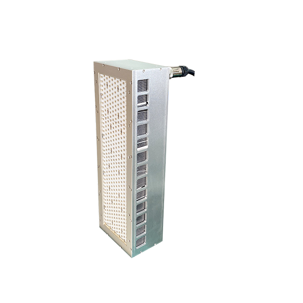 This is a high-performance uv led light source curing system. The system mainly includes a controller and an irradiation head. The irradiation head uv lamp is assembled from imported LED lamp beads. The uv lamp has stable performance and reliable quality. The uv spectrum of this light source is 365nm, the effective irradiation area is 400x100mm, it adopts forced air cooling to dissipate heat, supports external signal input and triggering, and can be equipped with semi-automatic or fully automatic production lines.