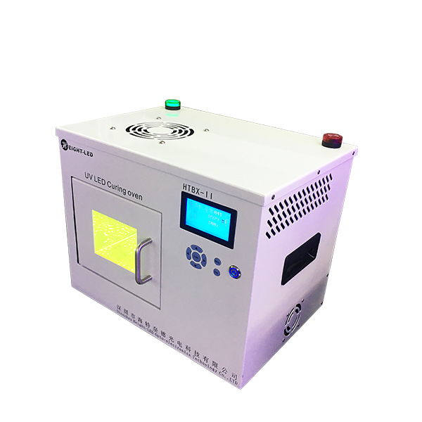 The UVLED curing oven is a high-performance UVLED surface light source curing system, which mainly includes an oven, UVLED irradiation head, and connecting wires. The UVLED irradiation head of this system is integrated with imported high-intensity ultraviolet LEDs. The UV spectrum wavelength is 395nm. It uses forced air cooling. The effective curing area is 150X150mm. It supports external signal input and triggering. It can be equipped with semi-automatic or fully automatic production lines.