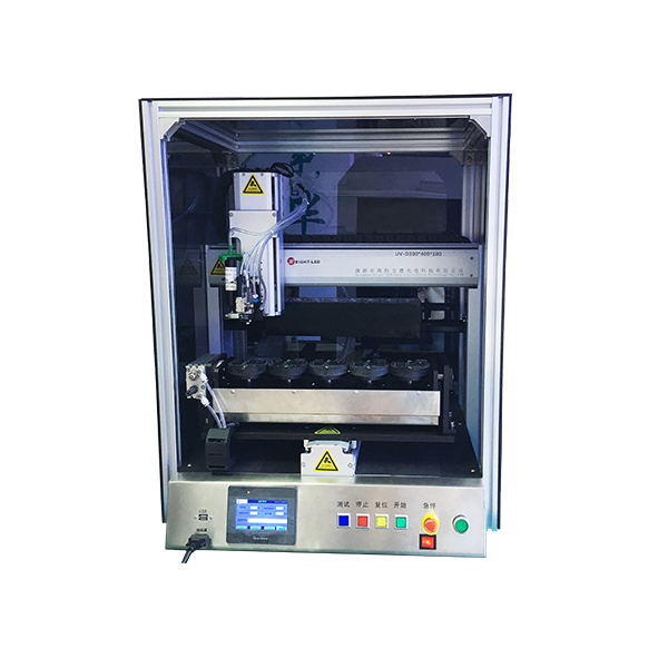 這是一款高性能自動點(diǎn)膠固化一體機(jī),內(nèi)置UVLED固化光源,即開即關(guān),不含汞, 也不會產(chǎn)生臭氧,具有安全環(huán)保、發(fā)熱量小、超級省電、壽命長等特點(diǎn)。光源尺寸、治具可根據(jù)客戶的產(chǎn)品量身定制。